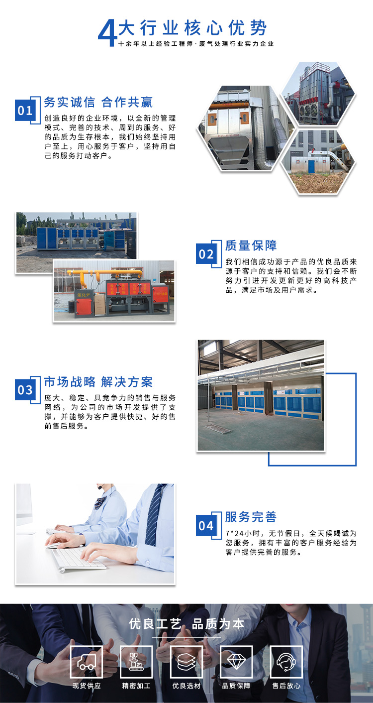 公司自成立以來(lái),始終專(zhuān)注于工業(yè)廢氣、污水、粉塵等環(huán)境污染的治理,先后研發(fā)出催化燃燒設(shè)備、光氧催化廢氣處理設(shè)備、低溫等離子廢氣處理設(shè)備、粉塵處理-體化設(shè)備等一系列環(huán)保設(shè)備,產(chǎn)品先后通過(guò)ISO901質(zhì)量管理體系認(rèn)證、中國(guó)環(huán)境保護(hù)產(chǎn)品認(rèn)證。